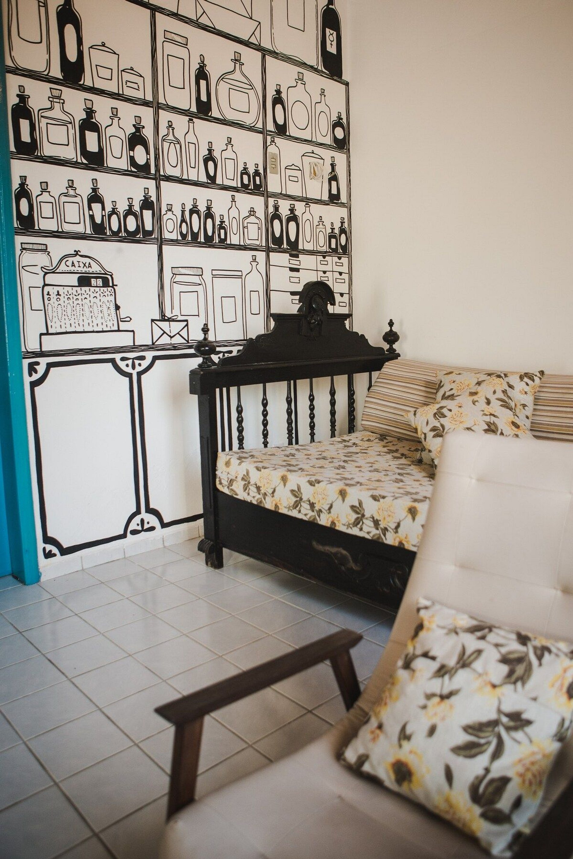 Divirta-se com toda a família e amigos neste lugar cheio de estilo no coração da cidade de Porto de Pedras a 40m da praia do Patacho. A Casa Botica é uma casa de 1920, recém reformada, com amplos quartos, todos com ar condicionado, área de lazer, churrasqueira, cozinha toda equipada, localizada a apenas 40m do mar. Todos os quartos são tematizados com intervenções artísticas de um artista incrível de Pernambuco, trazendo a regionalidade através do Cordel e a historia de uma casa histórica, super bem conservada.